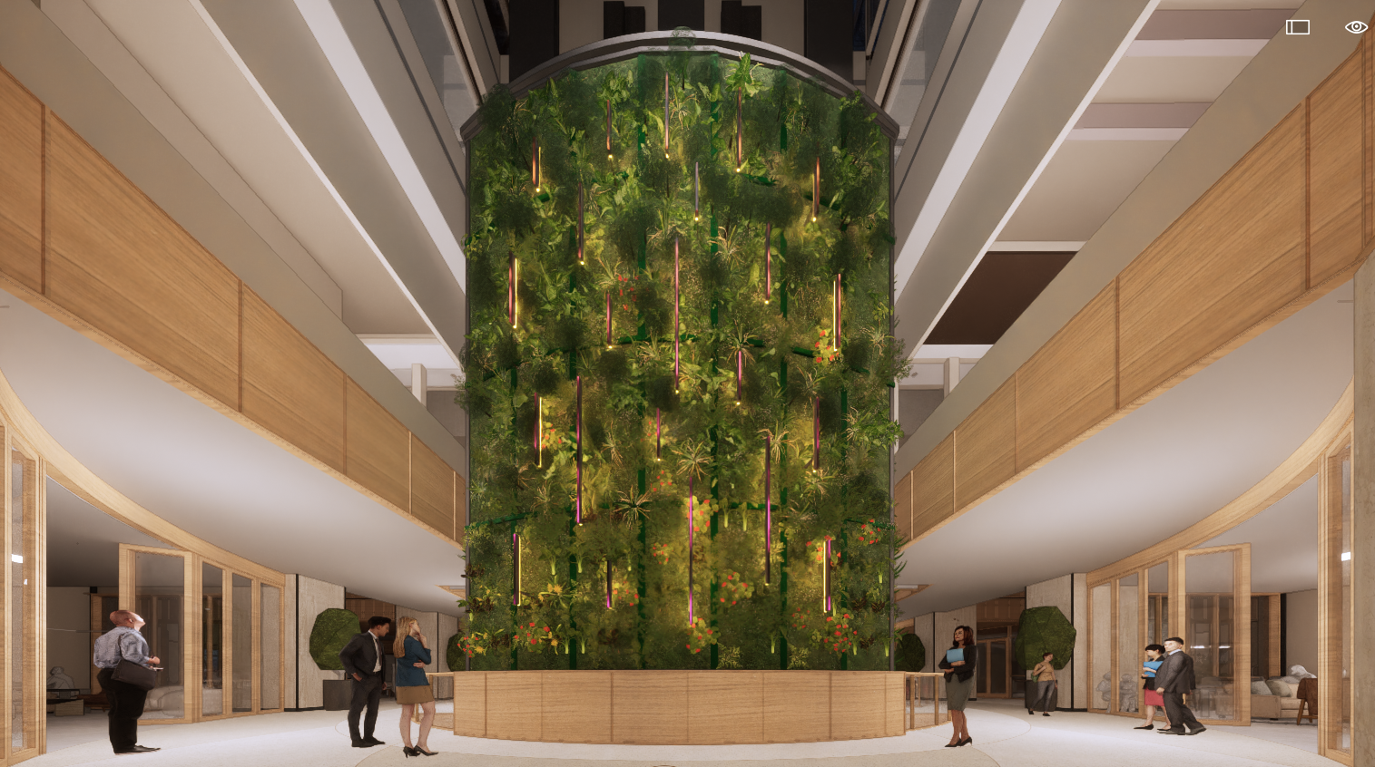 I helped design a 40’ green wall accented with dynamic lighting for the building’s lobby. The new feature is intended to attract tenants and remote workers, and draw in the public for multipurpose programming that generates revenue.